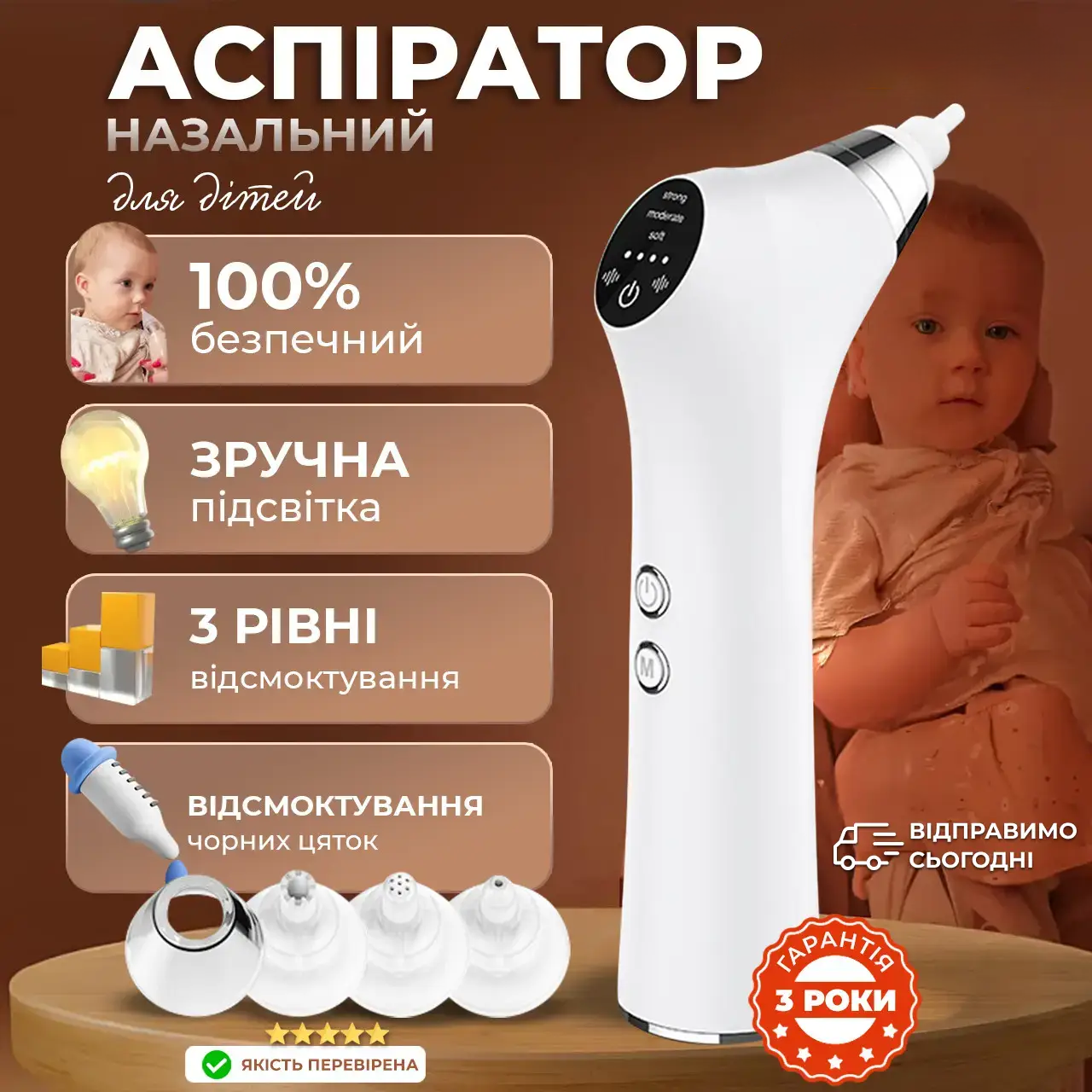- Ефективне видалення слизу:швидко і легко видаляє слиз, полегшуючи дихання малюка